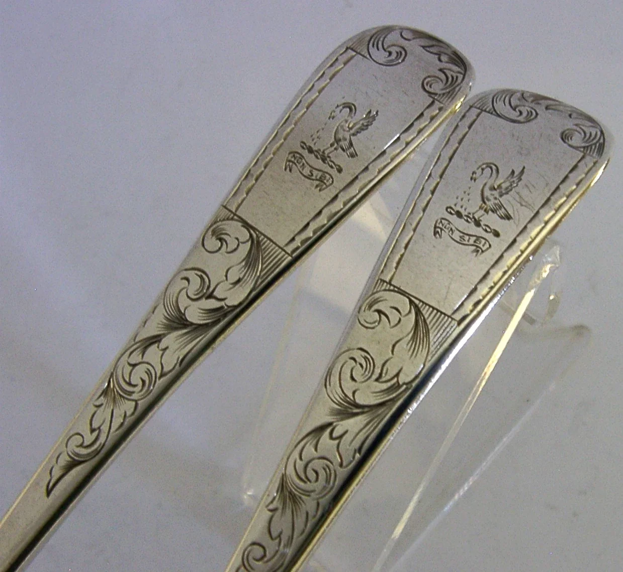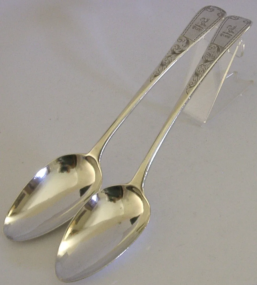 ENGLISH STERLING SIVER CULLEN FAMILY CRESTED SERVING SPOONS 1801 ANTIQUE 128g
