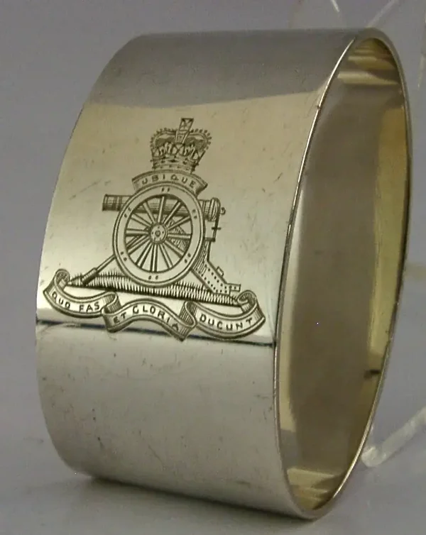SUPERB HEAVY 58g STERLING SILVER MILITARY NAPKIN RING ROYAL ARTILLERY 1967