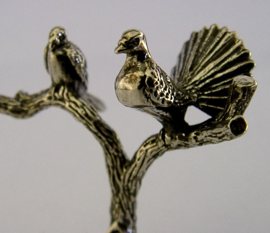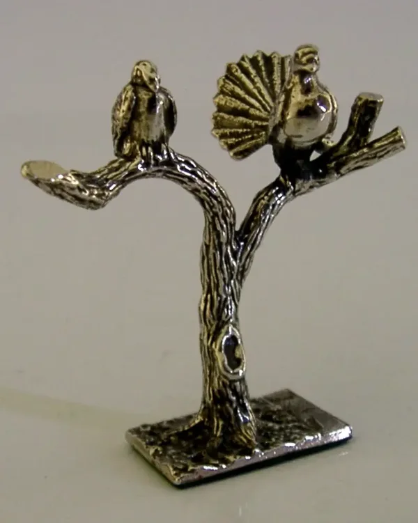A super quality sterling silver animal themed ring tree. It is hallmarked for London 1981 with the makers marks being TCJ. It has been superbly designed being cast in the form of a two birds on on old tree. It is in superb condition being free from dings splits holes and repairs. It measures approx. 2 inches (4.8cm) tall by the same wide and weighs 23 grams. A very nice quality unusual example.