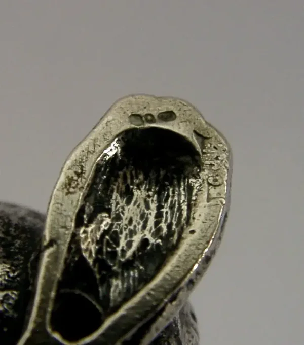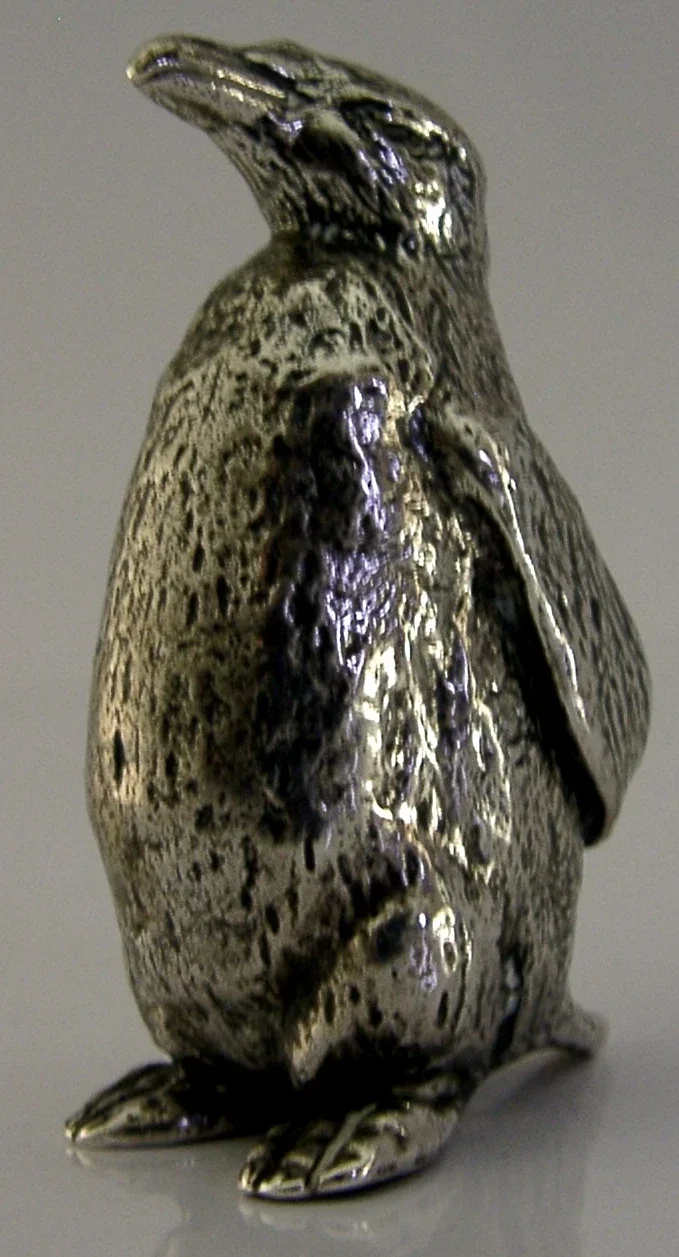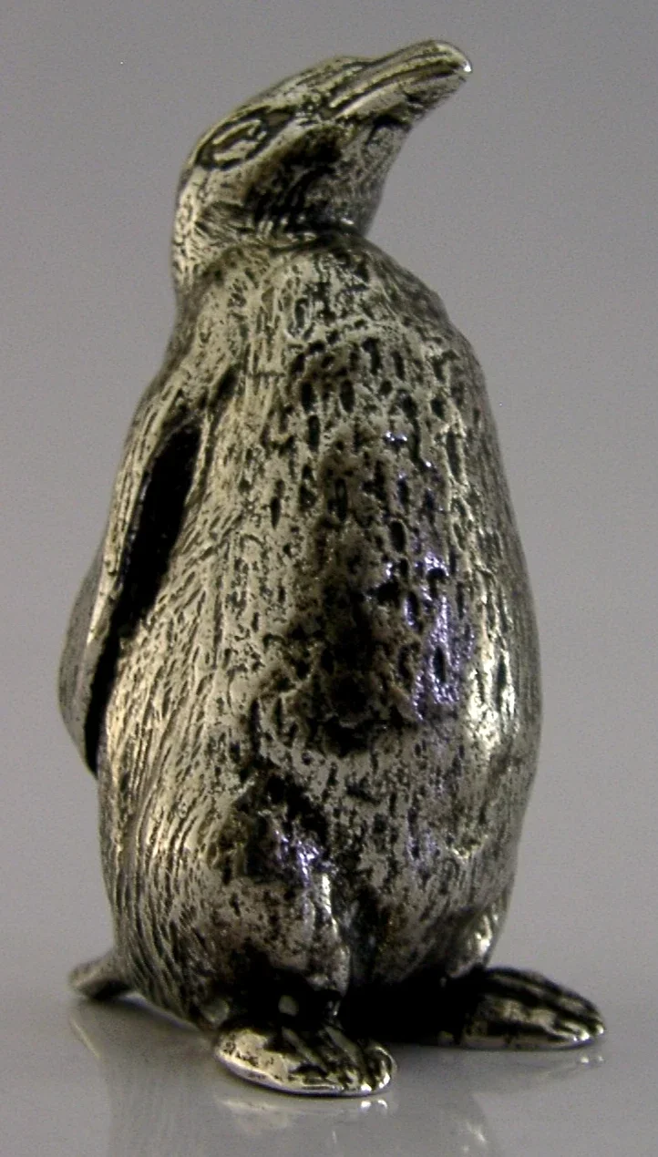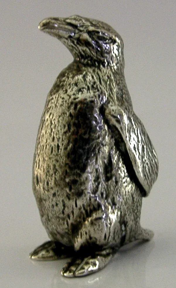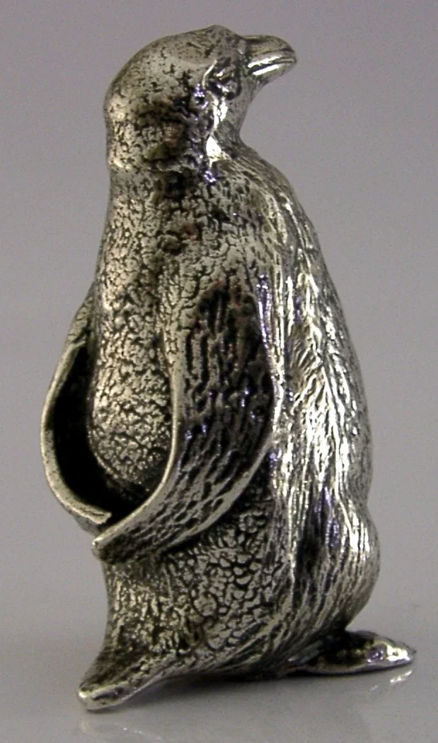 A superbly modelled good sized sterling silver bird figure. It is hallmarked for London 1956 with the maker marks being CJI. It has been beautifully modelled being finely hollow cast in the form of a penguin. It is in super condition being free from dings splits and repairs. It measures approx.2.5 inches (6.3cm) tall and weighs 54 grams (all silver weight, i.e. it is not filled). A very well designed high quality example.