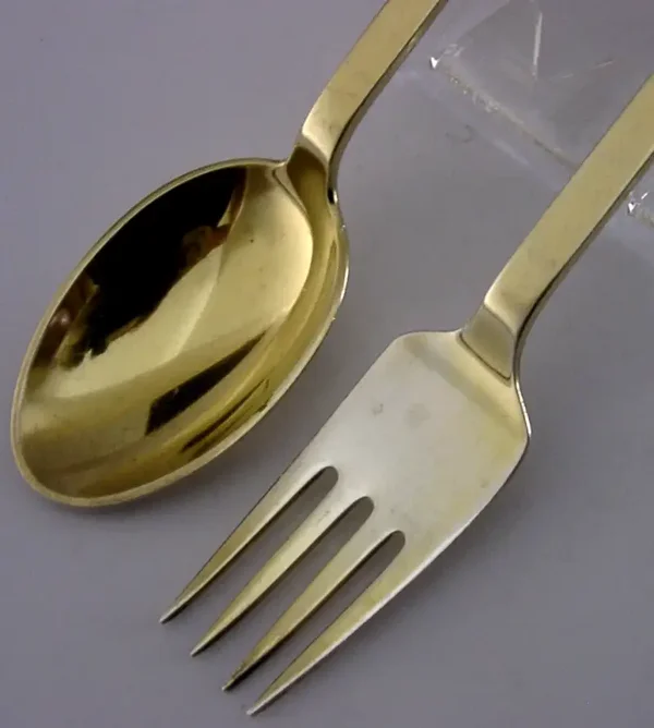 A very pretty Danish solid sterling silver and enamel Christmas spoon and fork set. They are hallmarked STERLING along with the makers marks Michelsen and date to 1968 being made to mark JUL (Christmas). They are in superb condition being free from dings splits chips cracks distortions and repairs. They measure approx. 6.5 inches (16.3cm) long and together weigh 90 grams. A super quality set.