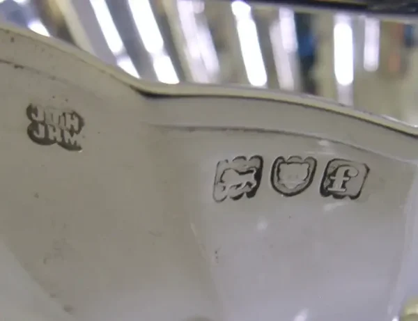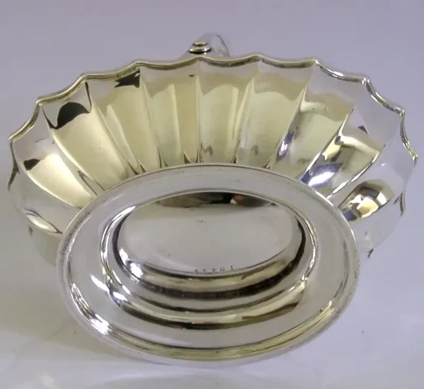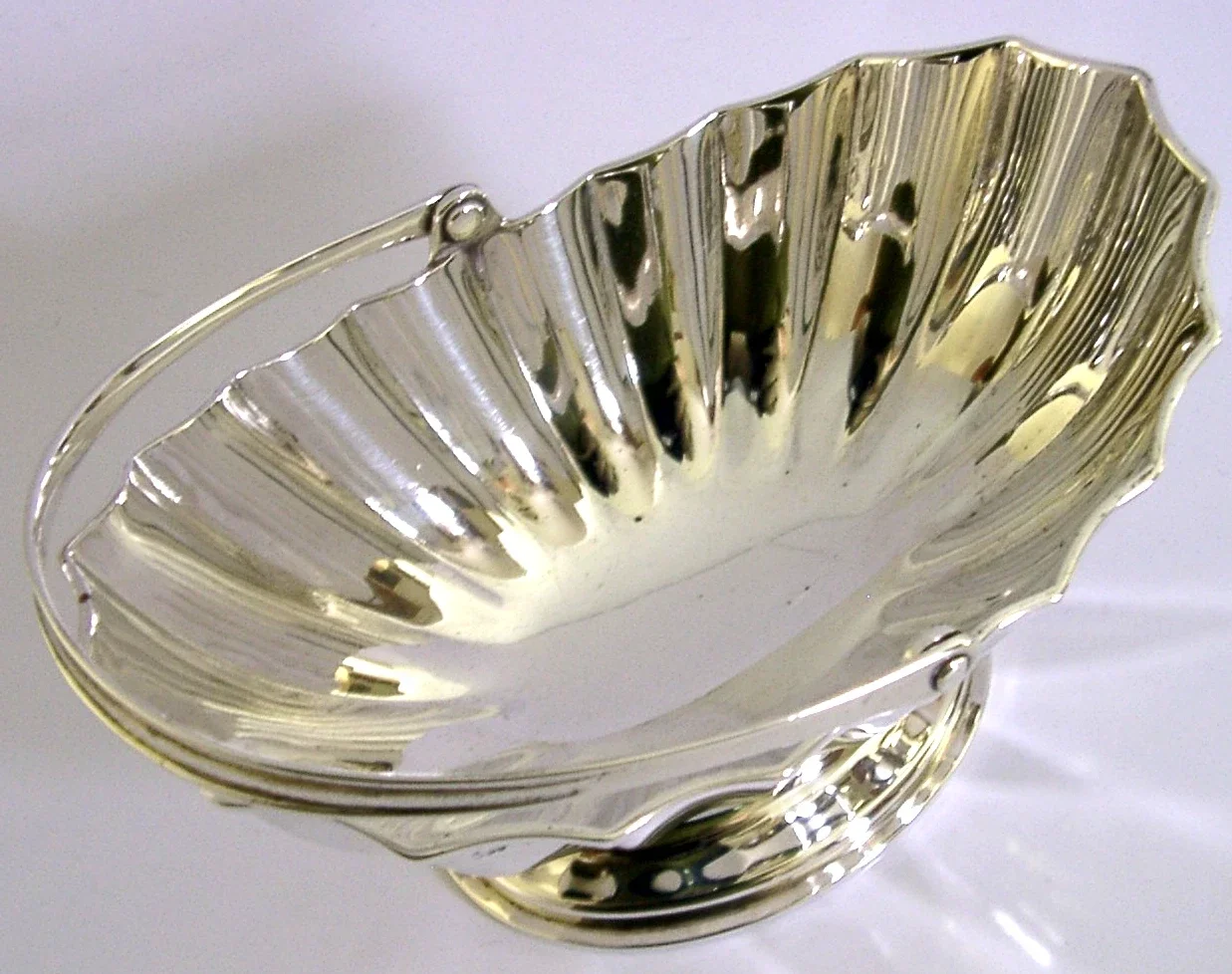 A super quality antique solid sterling silver swing handled bowl, nut dish, or bonbon basket. It is hallmarked for London 1901 with the maker being Heath and Middleton. It has superbly designed having a swing handle and faceted bowl and is in superb condition being free from dings, splits, engravings, and repairs. It measures approx. 6 inches (15cm) long by 3.75 inches (9.8cm) wide by almost 5.5 inches (5cm) tall to the top of the handle and weighs 178 grams. A very good quality well made clean piece.