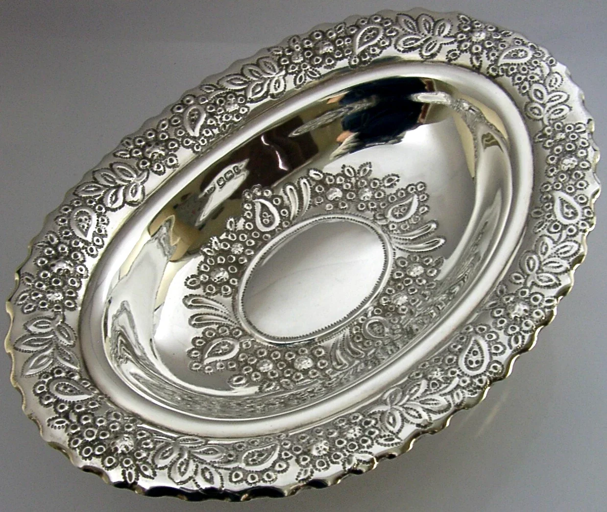 STUNNING 246g ENGLISH STERLING SILVER FLOWER EMBOSSED BOWL DISH 1909 ANTIQUE