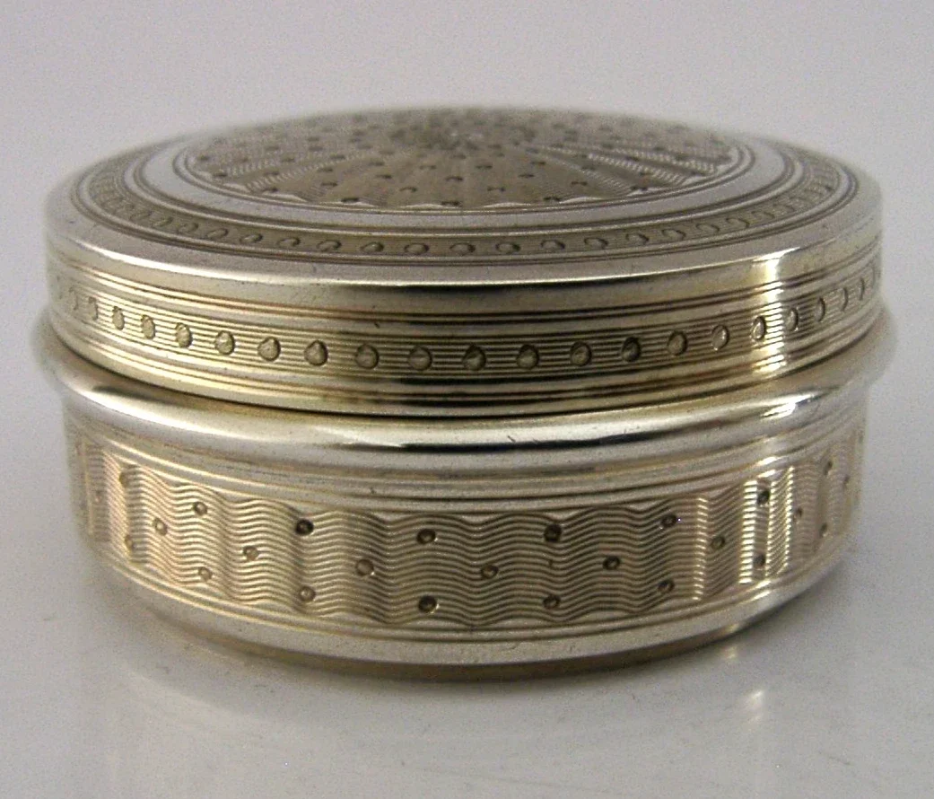 A beautiful antique French solid silver trinket box. It is hallmarked with the French Minerva head mark and the makers marks of Anthony Salomon who operated 1901-1912. It has been beautifully made and s in super condition being free from dings splits holes and repairs, the inside is clean and the lid closes tight. It measures approx. 1.75 inches (4.5cm) across by 1 inch tall and weighs 24 grams. A beautiful piece.