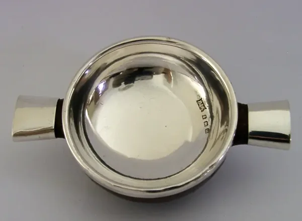 A beautiful solid sterling silver and wood quaich cup. It is hallmarked for Birmingham 1911 with the makers marks being Brook and Sons of Edinburgh. It has been superbly designed to hold whisky. It is in superb condition having no dings splits or repairs, just a tiny dimple to the bowl see final photo. It measures approx. 4 inches (10cms) across including the handles by 1.25 inches (3.7cms) tall and weighs 59 grams. A superb example.
