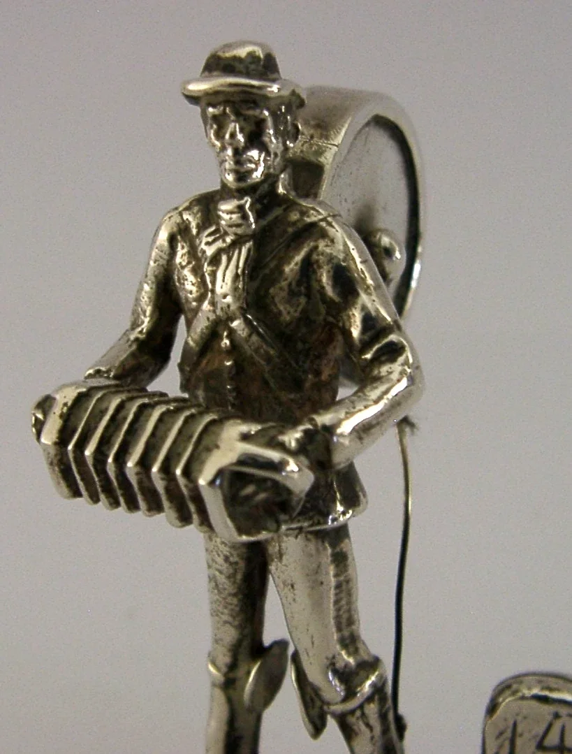 ENGLISH STERLING SILVER number 14 VICTORIAN ONE MAN BAND MENU HOLDER 1978