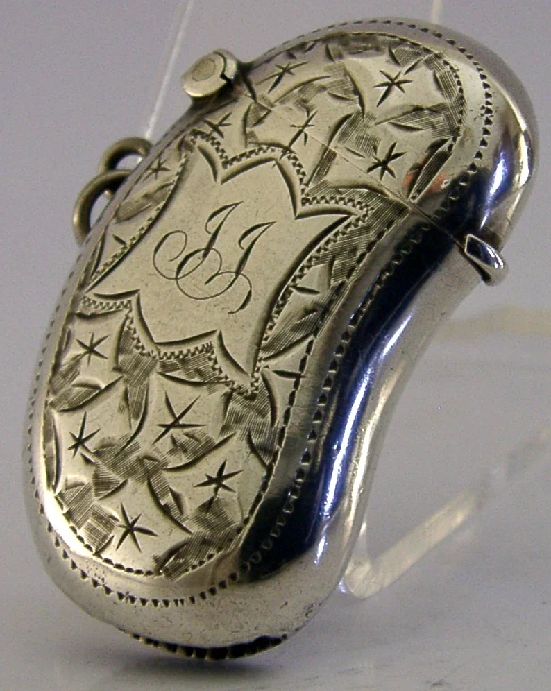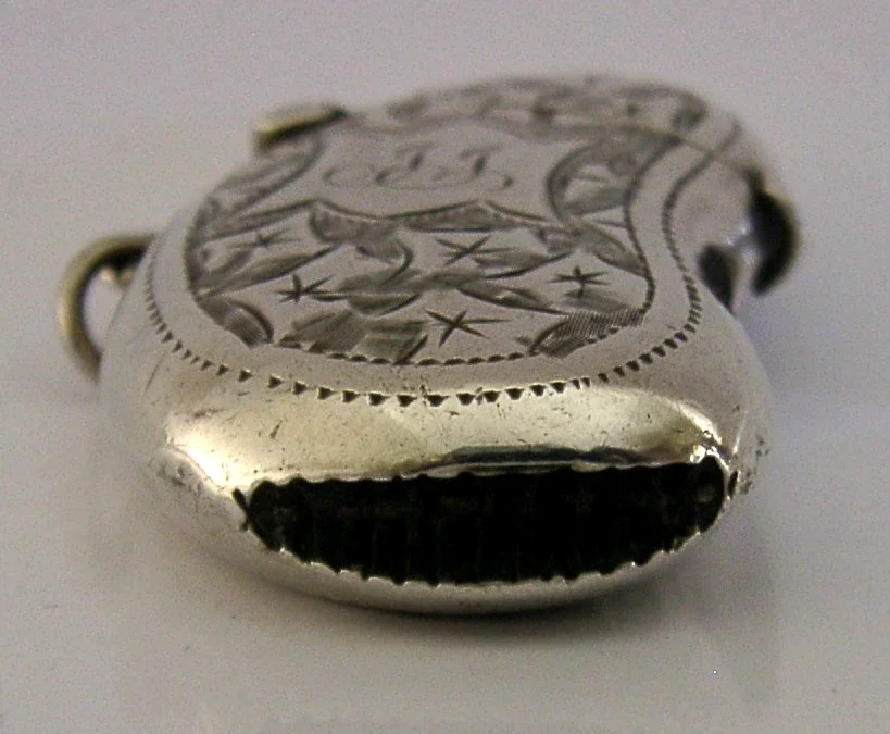 UNUSUAL KIDNEY SHAPED ENGLISH STERLING SILVER VESTA MATCH CASE 1905 ANTIQUE