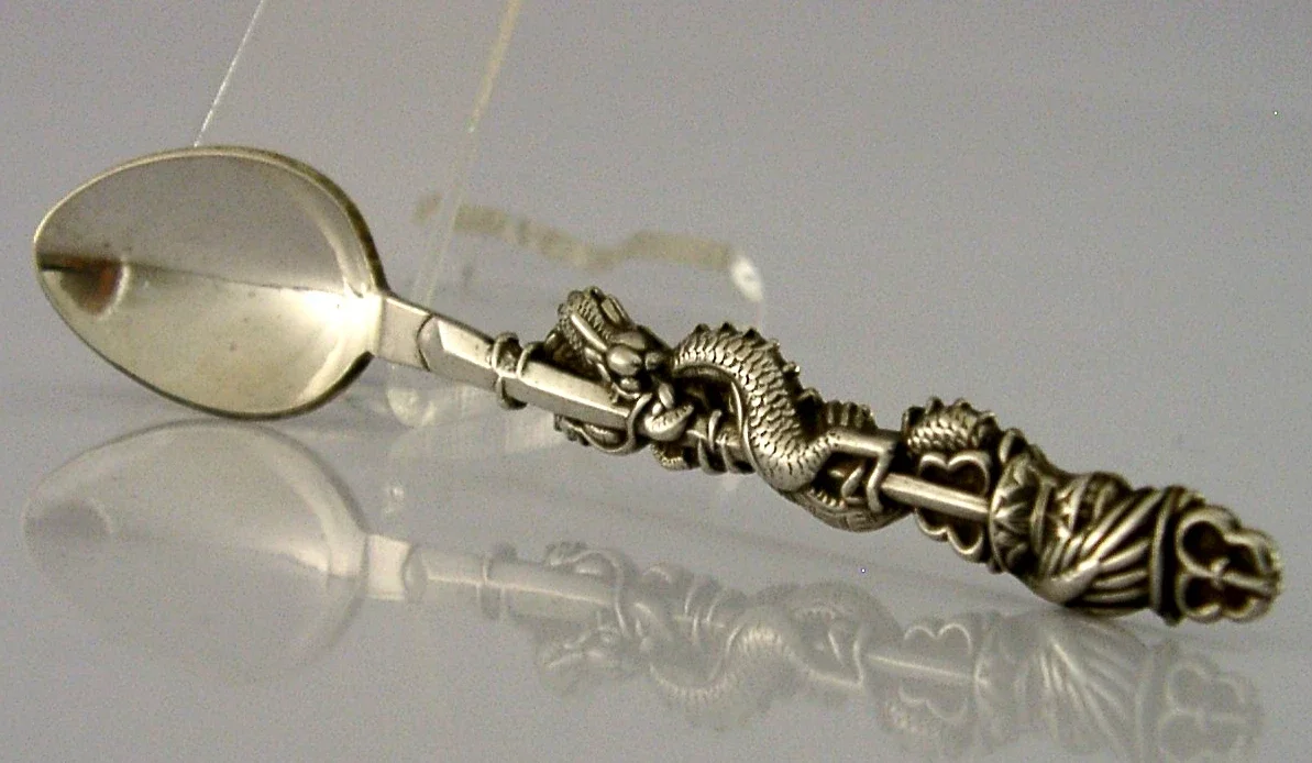 JAPANESE / CHINESE EXPORT SOLID SILVER DRAGON SPOON c1940 ANTIQUE