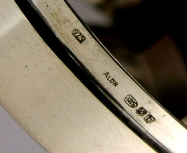 A mint English solid sterling silver and gold love heart box. It is hallmarked for London 2002 with the makers marks being ALND which I think is an Asprey mark. It has been beautifully made being of heart form with a pink heart shaped stone set in gold. It is in super condition being free from dings splits holes and repairs. It measures approx. 2 inches (5.2cm) across in both directions and weighs 44 grams. A very high quality piece.