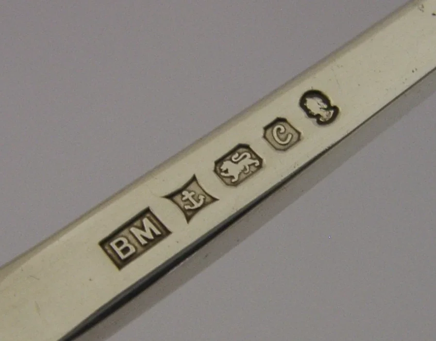 A superb English solid sterling silver apostle spoon. It is hallmarked for London 1977 with the maker being Birmingham Mint. It has been beautifully made with the terminal being in the form of St James the Greater the Patron Saint of Soldiers, Pilgrims, Vets, and others. It is in super condition being free from dings splits and repairs. It measures approx. 5.75 inches (14.5cm) long by 1.5 inches (3.8cm) wide (dessert spoon sized) and weighs a respectable 33 grams. A very well made piece.