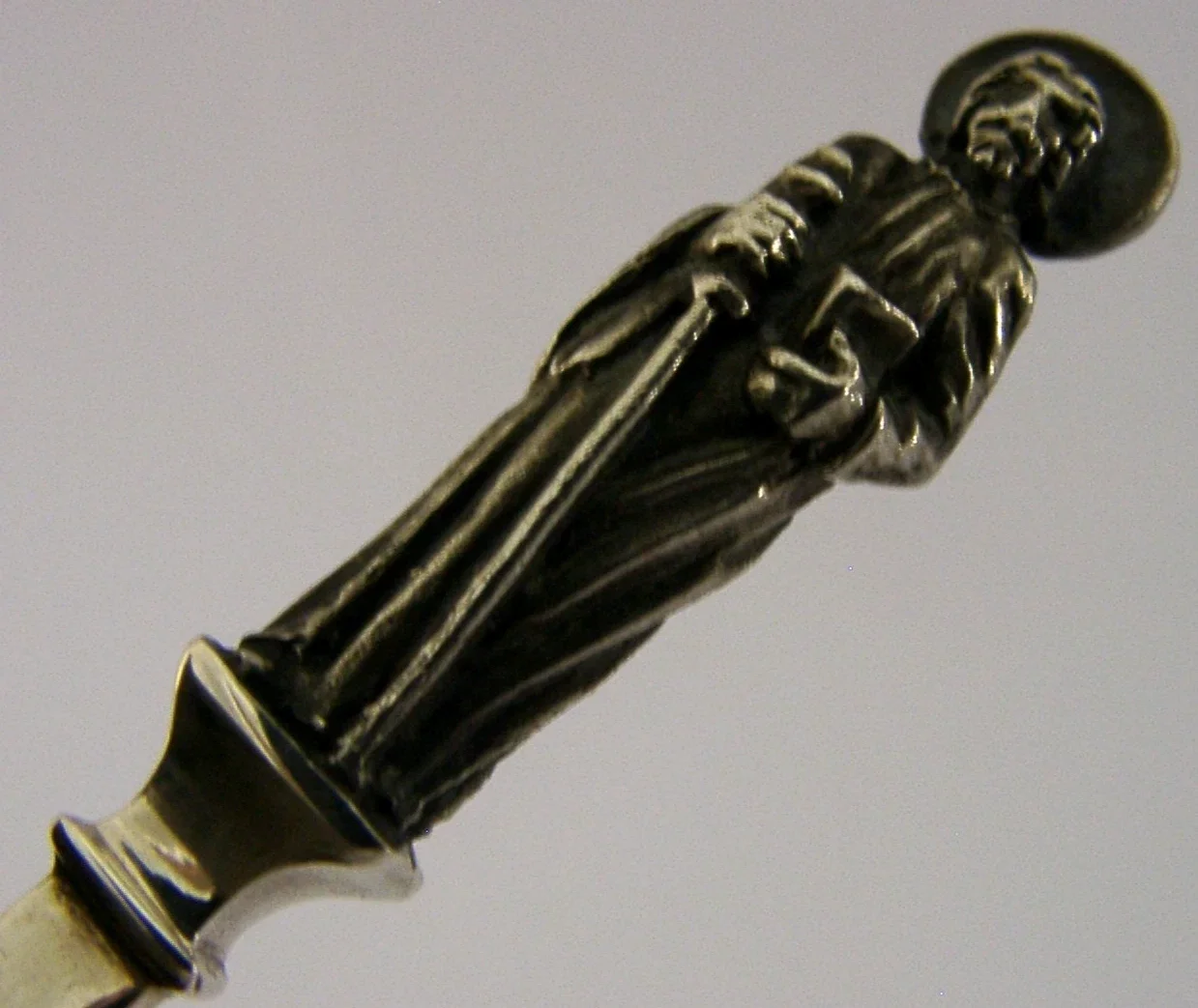 33g JAMES PATRON SAINT of SOLDIERS & VETS STERLING SIVER APOSTLE SPOON 1977
