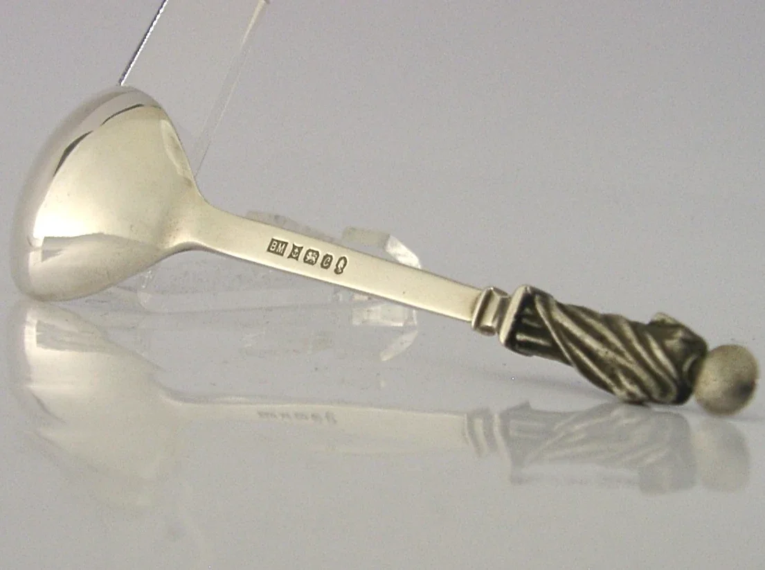 A superb English solid sterling silver apostle spoon. It is hallmarked for London 1977 with the maker being Birmingham Mint. It has been beautifully made with the terminal being in the form of St Philip the Patron Saint of Bakers, Chefs and Fishermen. It is in super condition being free from dings splits and repairs. It measures approx. 5.75 inches (14.5cm) long by 1.5 inches (3.8cm) wide (dessert spoon sized) and weighs a respectable 34 grams. A very well made piece.