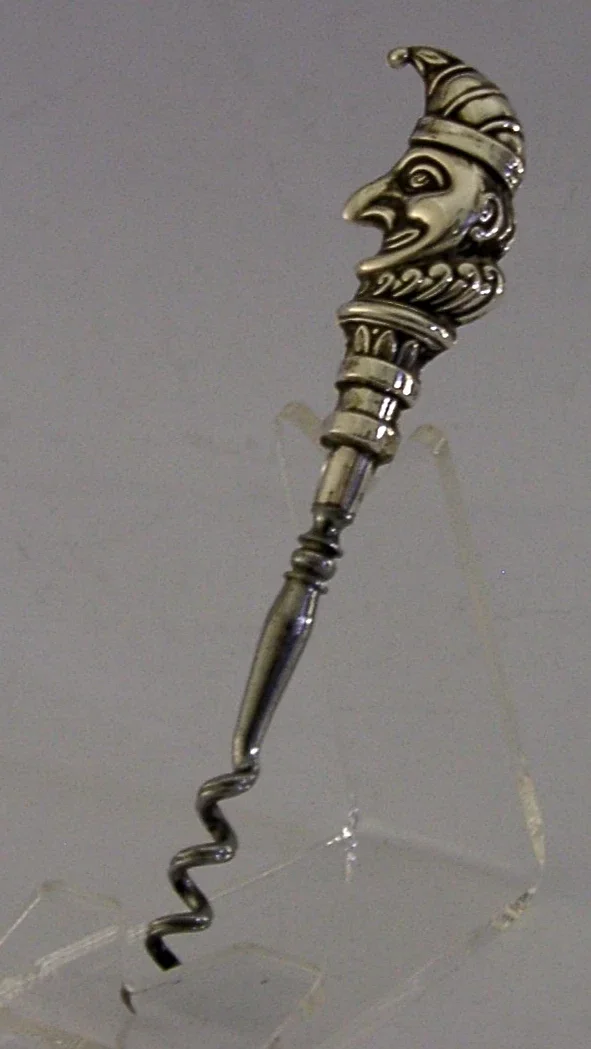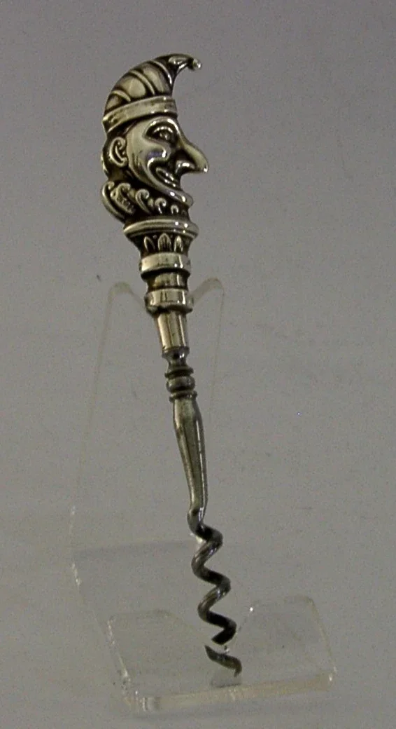 NOVELTY ANTIQUE CORKSCREW STERLING SILVER MR PUNCH 1910