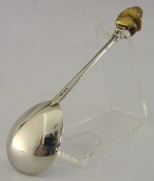 A super quality heavy cast solid sterling silver spoon. It is hallmarked for London 1975 with the makers marks being LIH. It has been superbly made being cast and gilded in the form of King Charles II. It is in superb condition being free from dings splits distortions and repairs. It measures approx. 4.5 inches (11.5cm) long and weighs 33 grams. A superb quality piece.