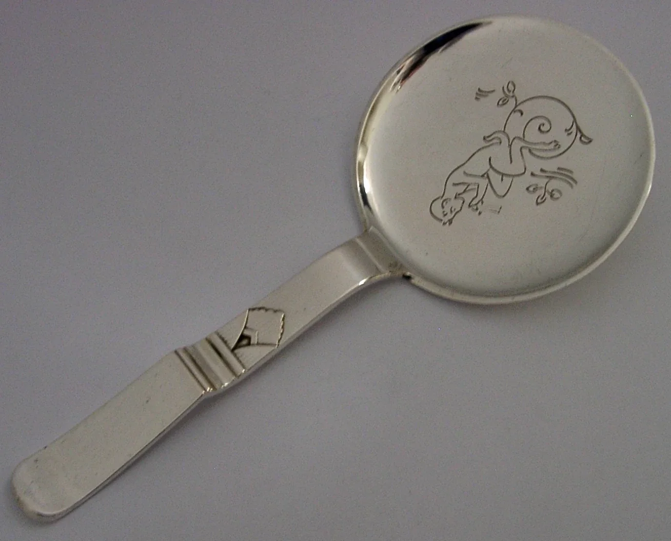 BEAUTIFUL DANISH 64g SOLID SILVER SERVER PAN FAUN SATYR 1933 ART DECO ANTIQUE