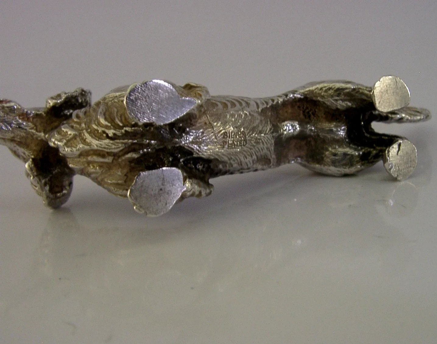 QUALITY ENGLISH SILVER PLATED DACHSHUND DOG DESK FIGURE c1950s ANIMAL 420g