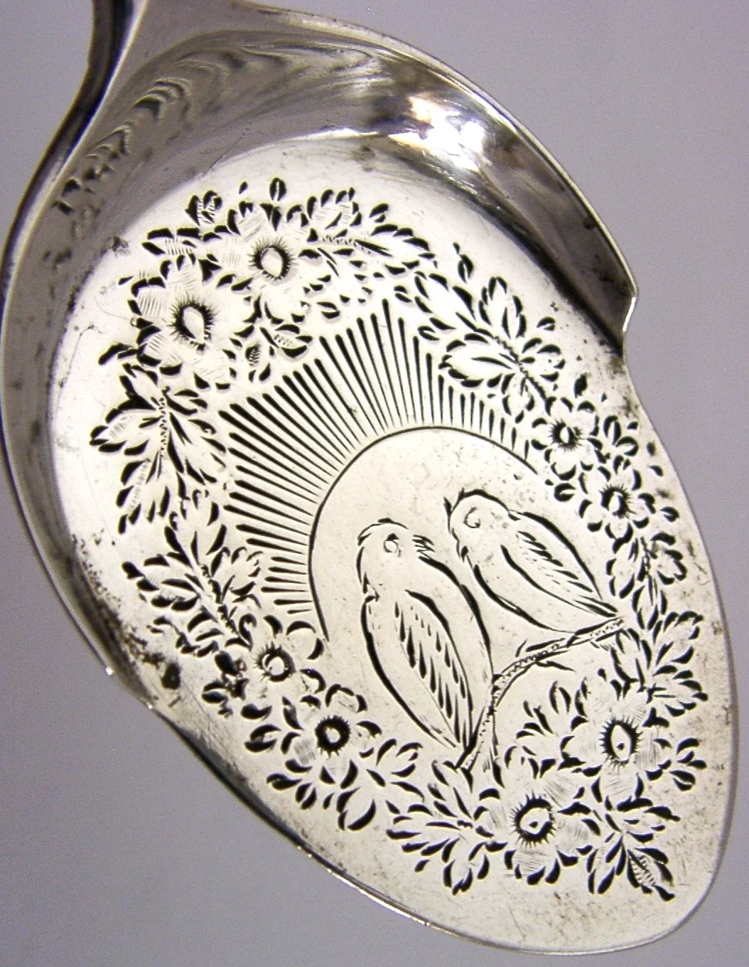 ENGLISH VICTORIAN STERLING SILVER BIRDS JAM PRESERVE SPOON 1894 ANTIQUE