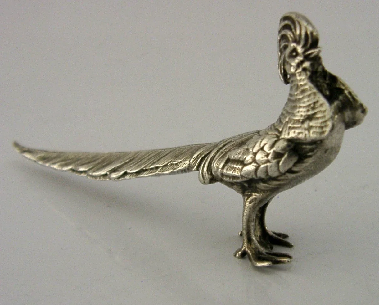 ENGLISH 3.25inch STERLING SILVER GOLDEN PHEASANT FIGURE 1961 SHOOTING ANIMAL