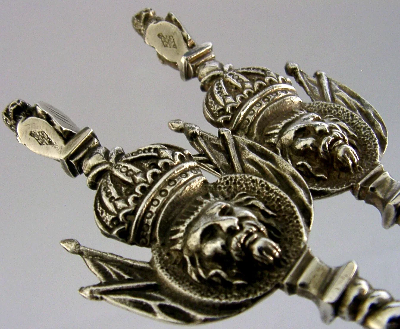 BEAUTIFUL ENGLISH VICTORIAN SILVER PLATED LION SERVING SPOONS 1873 ANTIQUE 206g