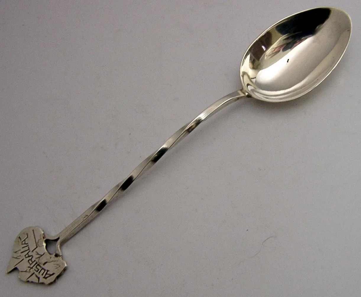 A nice clean Australian solid sterling silver souvenir spoon. It is hallmarked STG SILVER for sterling silver. I would date it to c1920. It has been superbly made with terminal being in the form of Australia. It is in perfect condition being free from dings splits distortions and repairs. It measures almost 5 inches (12.5cm) long by 1 inch (2.6cm) wide and weighs 12 grams. A more unusual piece.