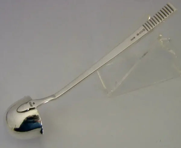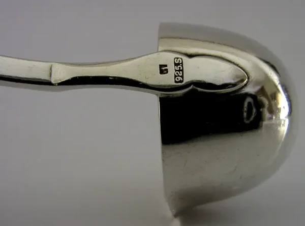 A rare Danish solid sterling silver cream ladle. It has been hallmarked with Georg Jensen marks along with the English import marks for London 1931. It has been superbly made to what is known as the Parallel or Relief pattern. It is in super condition being free from dings splits and repairs. It measures approx. 5.25 inches (13.3cm) long by 1.25 inches (3.2cm) wide and weighs 26 grams. A very nicely made rare piece.