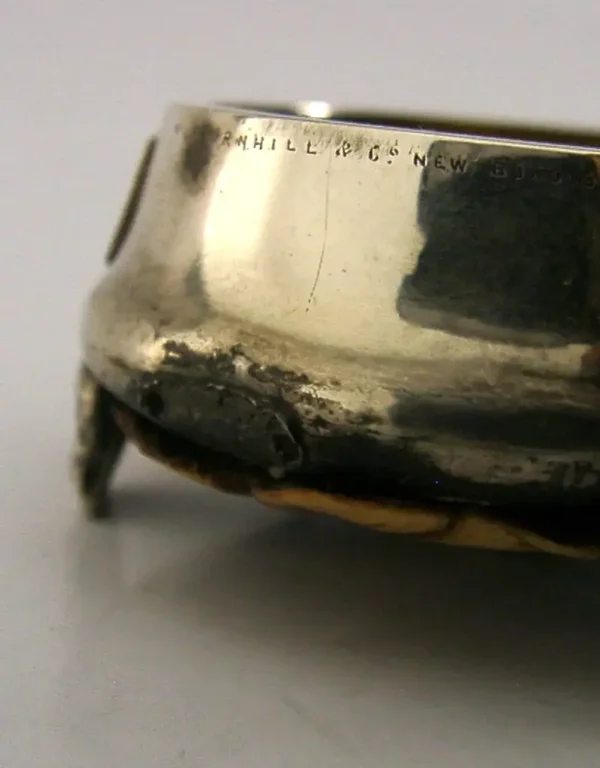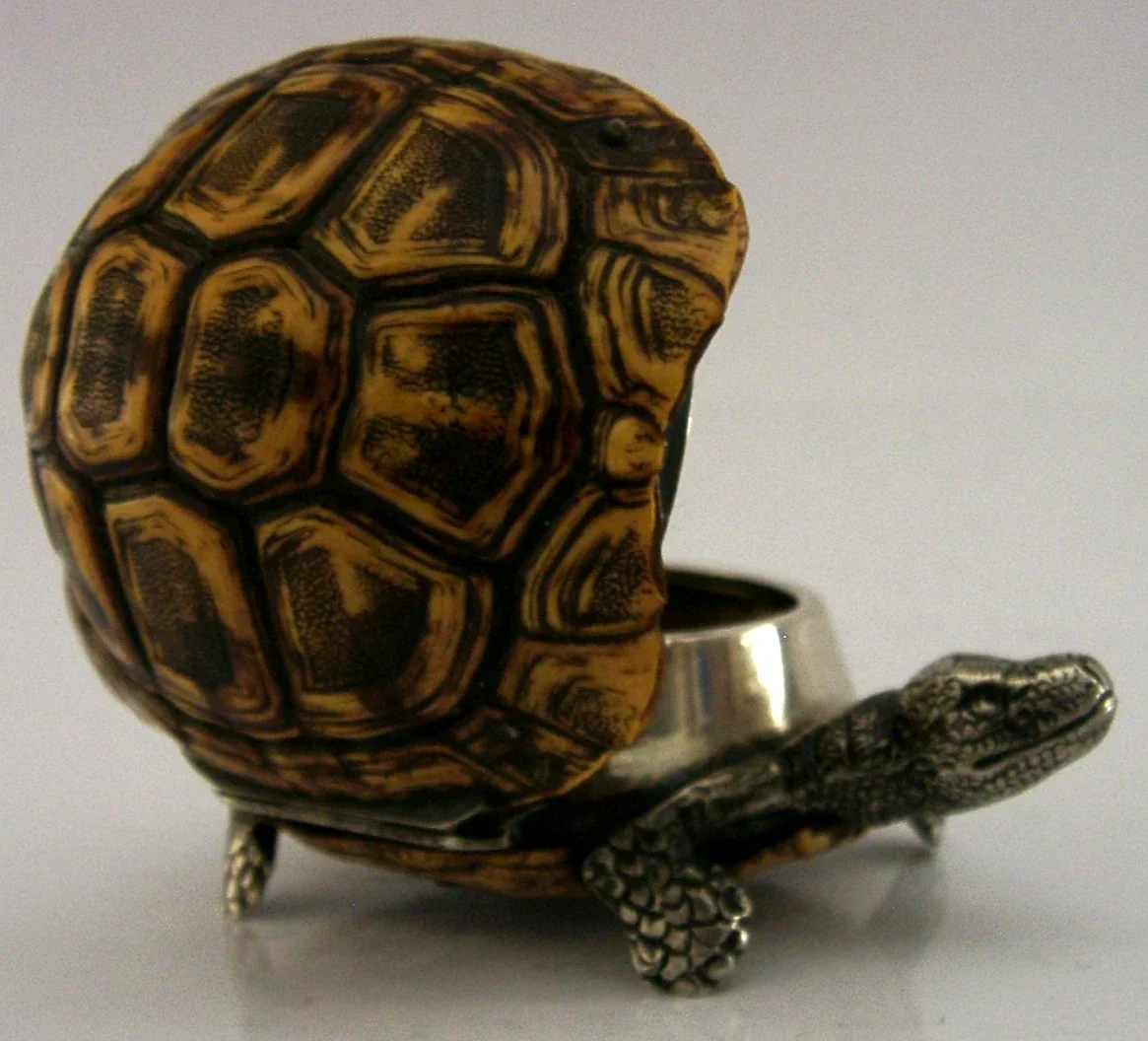 A very rare Victorian novelty solid silver novelty vesta case / match striker. It is hallmarked for London 1883 with the makers marks being WT for William Thornhill of New Bond St London. It is in ok condition considering its scarcity having no splits or holes, however the feet have been slightly pushed in and the tail is missing but this would be easy to replace particularly as there are two holes to secure two pins. It also needs a clean but I have not attempted this. It measures approx. 3 inches (2.75cms) long by 2 inches (5.5cms) wide by 1.5 inches tall and weighs 63 grams. A rare a fascinating piece.