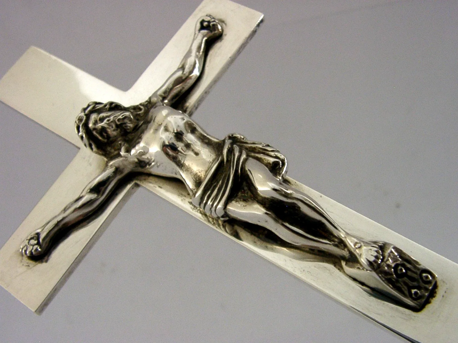 RARE LARGE 262g STERLING SILVER ALTER CROSS CRUCIFIX 1908 ANTIQUE RELIGIOUS