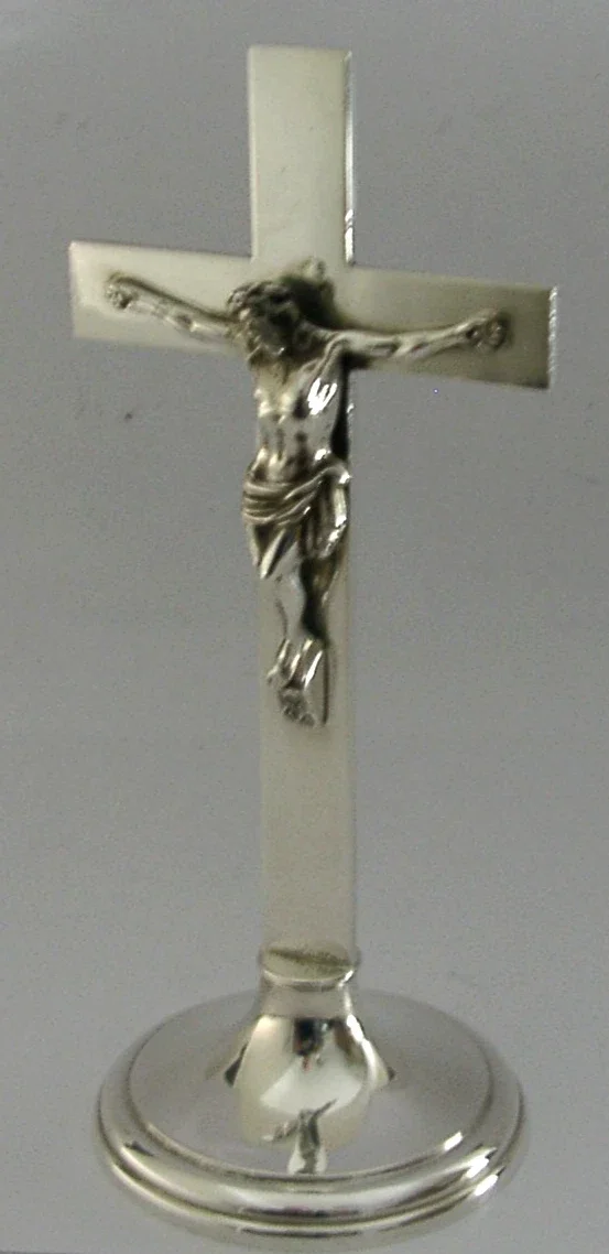 A rare good sized English antique solid sterling silver alter cross. It is hallmarked for Chester 1908 with the maker marks being Baraclough's of Leeds. It has been superbly designed and is in superb condition being free from dings splits distortions and repairs. It measures 8 inches (20.3cm) tall by 3.5 inches (9cms) wide and weighs 262 grams (not weighted). A superb high quality well made piece.