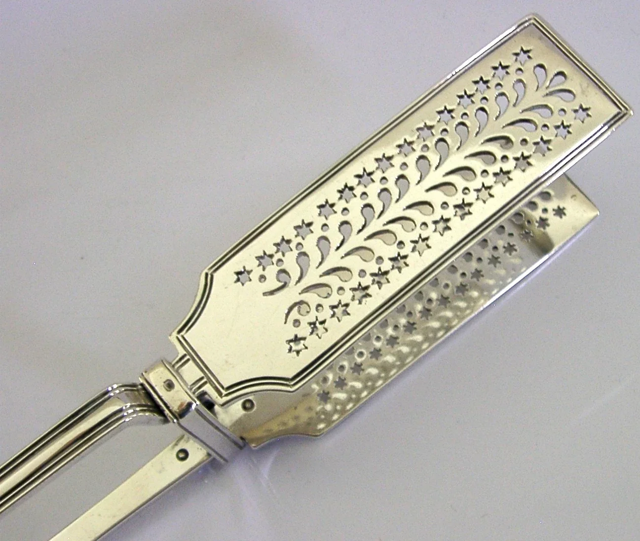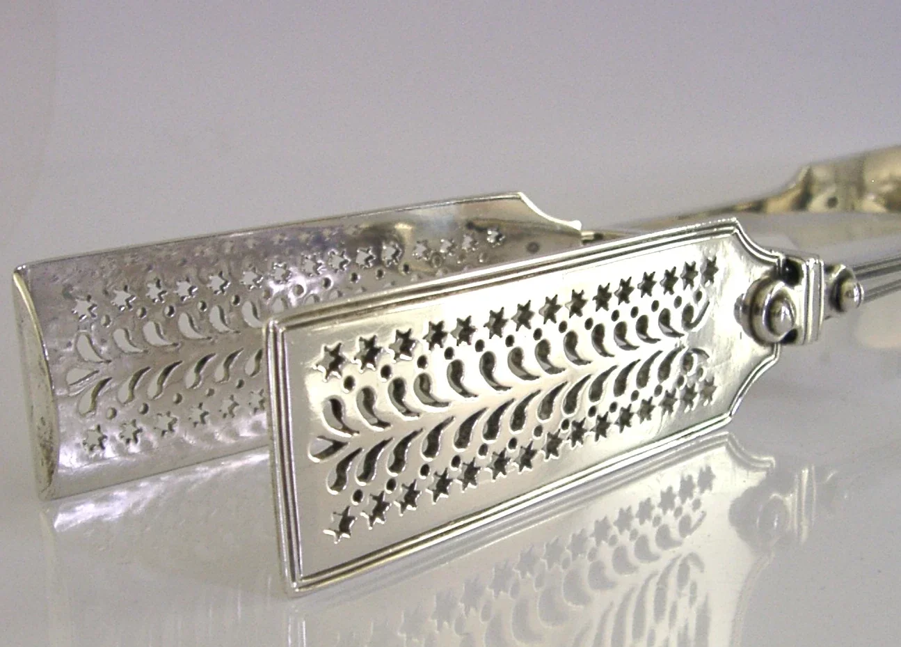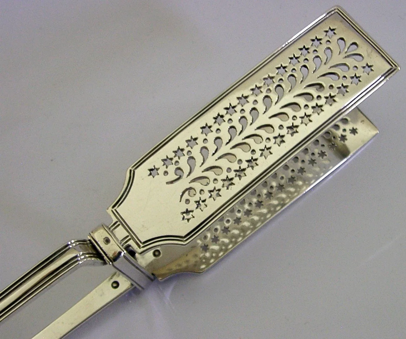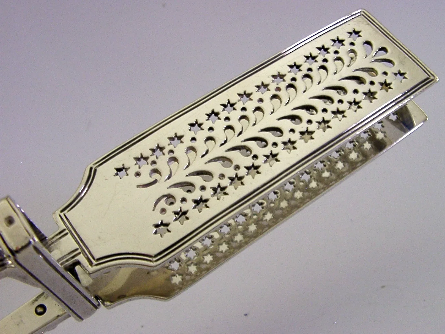 HEAVY 220g STERLING SILVER SERVING TONGS VICTORIAN ANTIQUE 1850