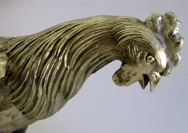 HUGE 854g FRENCH STERLING SILVER COCKEREL ROOSTER CHICKEN BIRD c1920 ANTIQUE