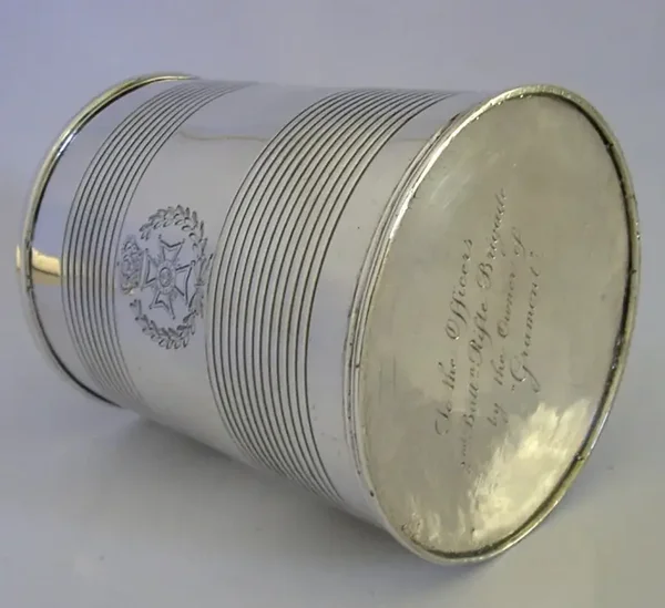 HISTORIC NAPOLEONIC WAR RIFLE BRIGADE STERLING SILVER PINT TANKARD 1829 GRAMONT