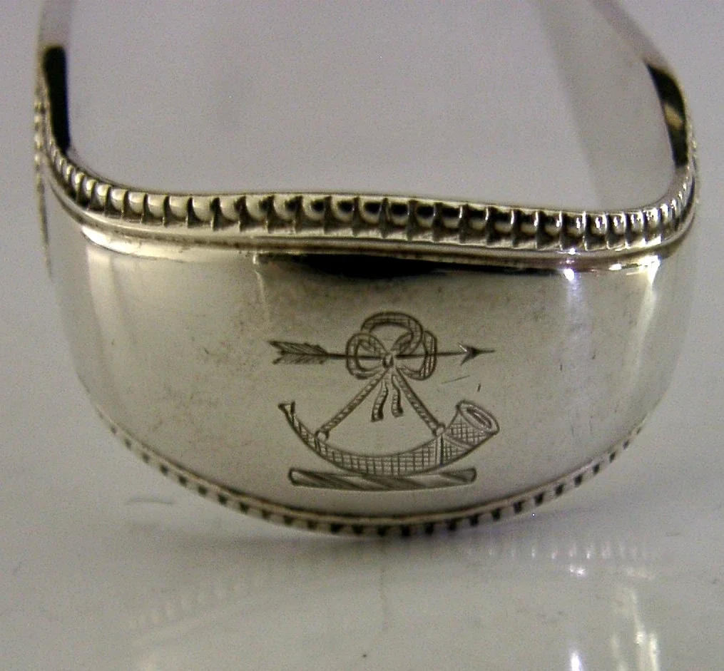 HORNBY FAMILY CREST STERLING SILVER VEGETABLE SERVING TONGS 1865 ANTIQUE