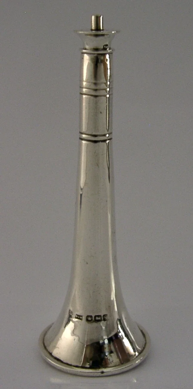 ENGLISH STERLING SILVER TABLE CIGAR LIGHTER FOX HUNTING HORN 1933 ANTIQUE