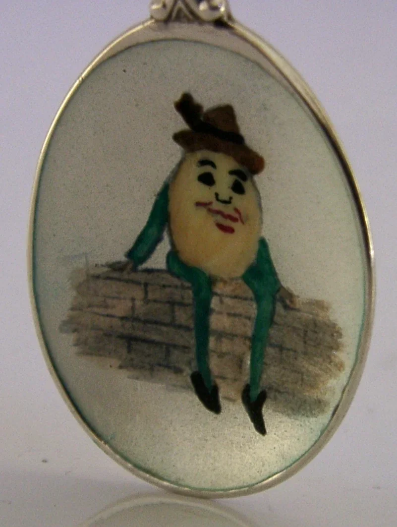 LOVELY SOLID STERLING SILVER ENAMEL HUMPTY DUMPTY SPOON 1970 HAND PAINTED