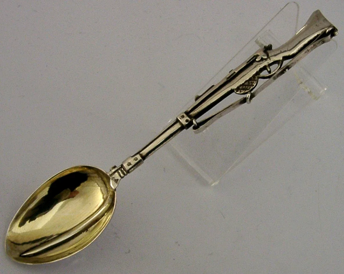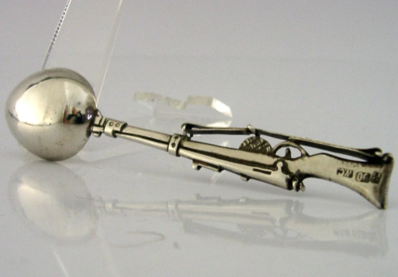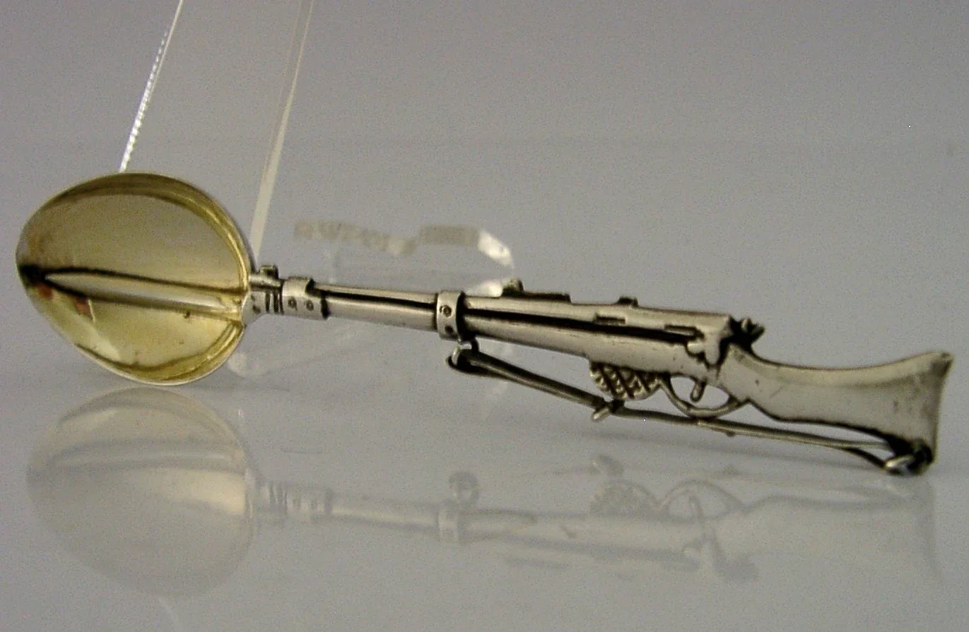 RARE SOLID CHINESE EXPORT SILVER RIFLE SPOON c1900 ANTIQUE SHOOTING MILITARY