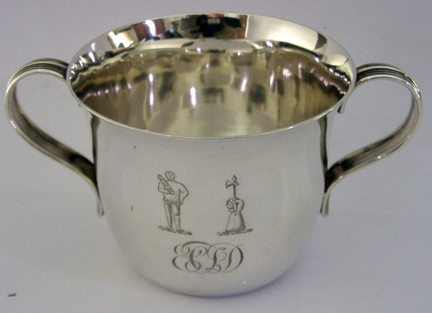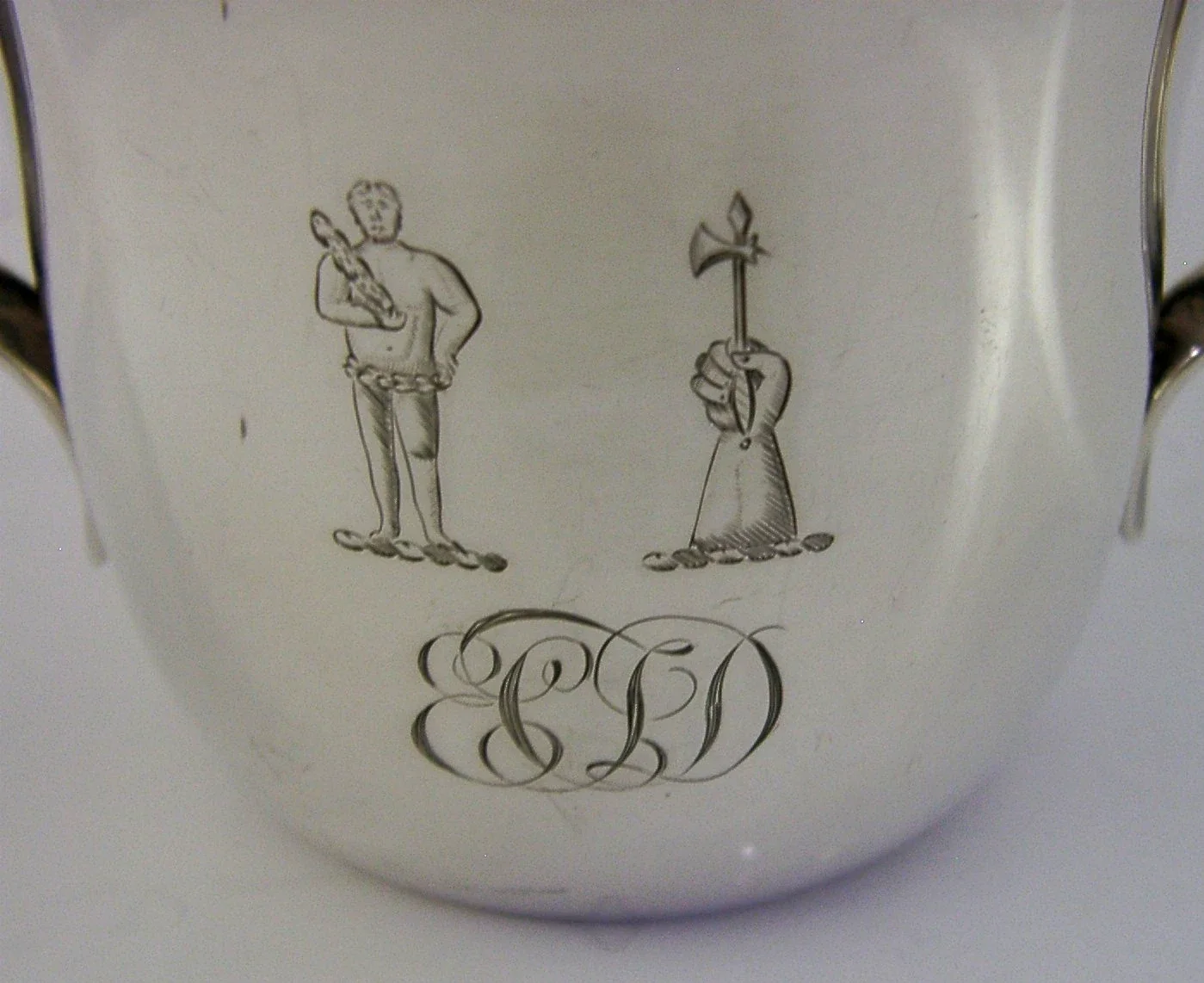 STERLING SILVER CORNEY DRAKE FAMILY CRESTED PORRINGER CUP BOWL 1905 ANTIQUE 136g