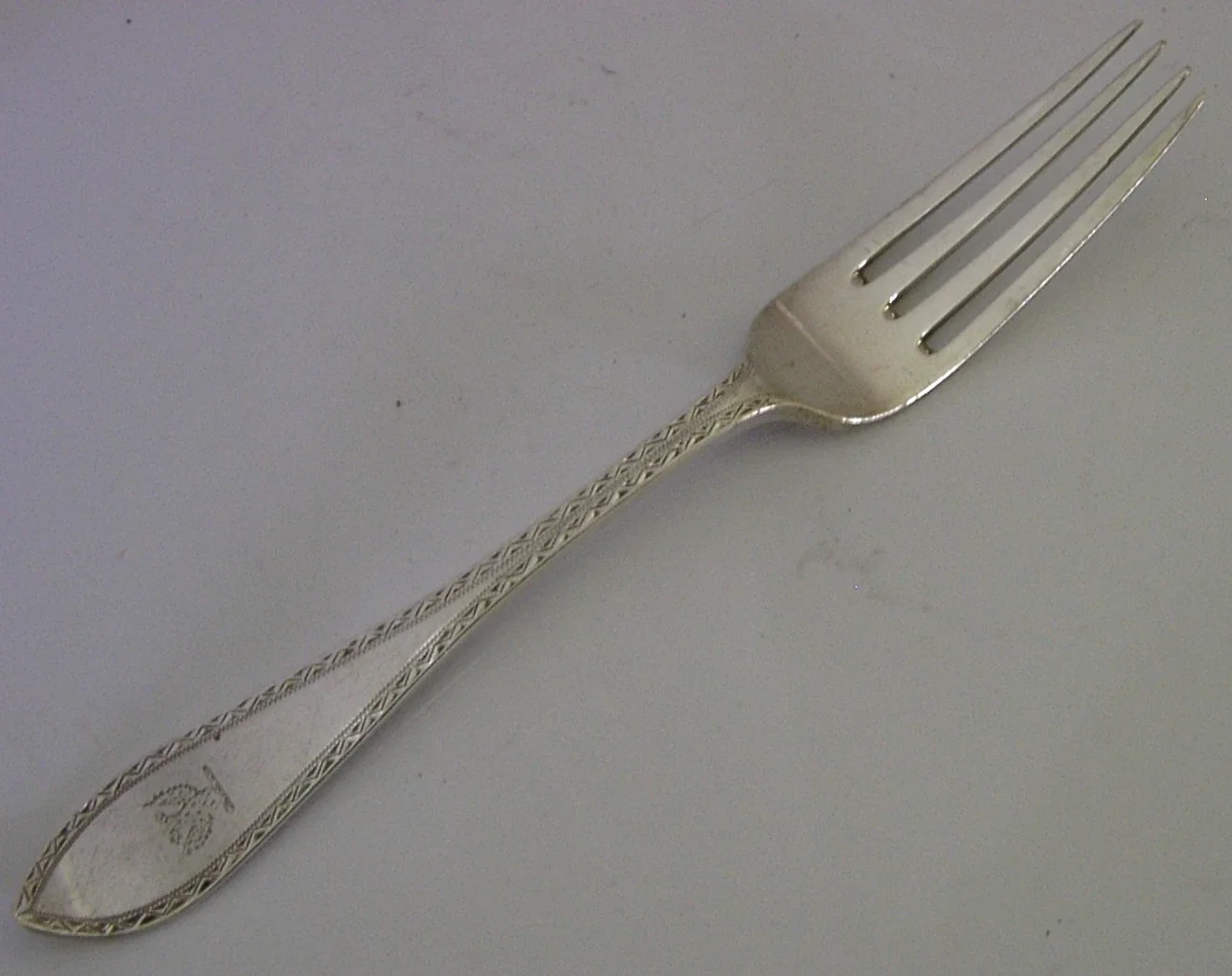 SOLID STERLING SILVER FORK EAGLE CRESTED 1906 47g ENGLISH ANTIQUE