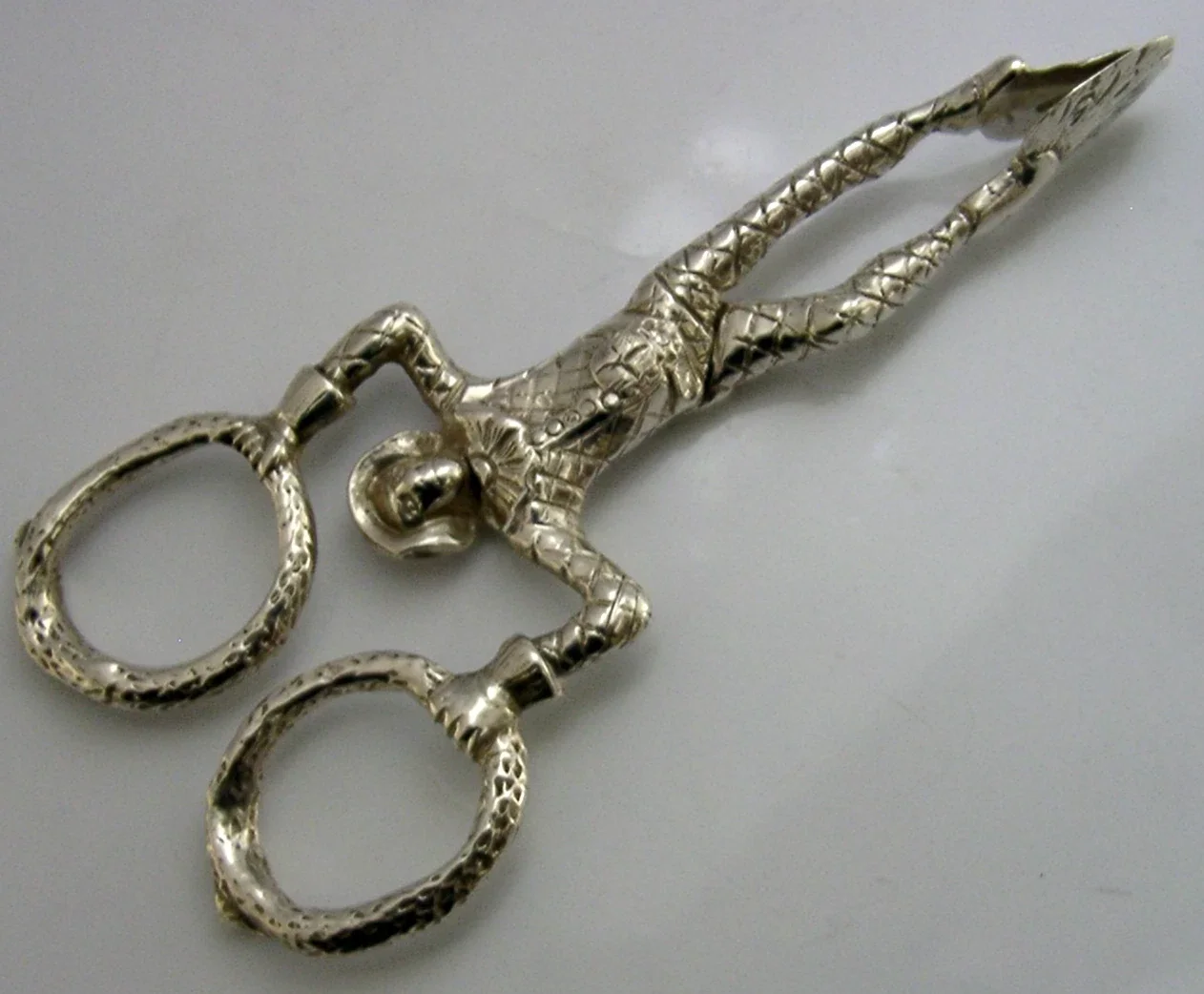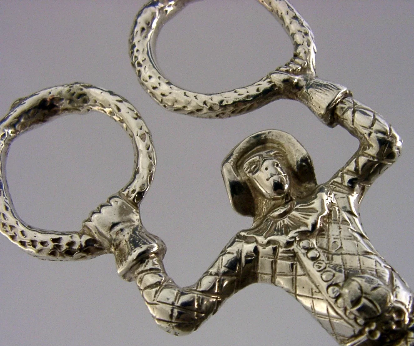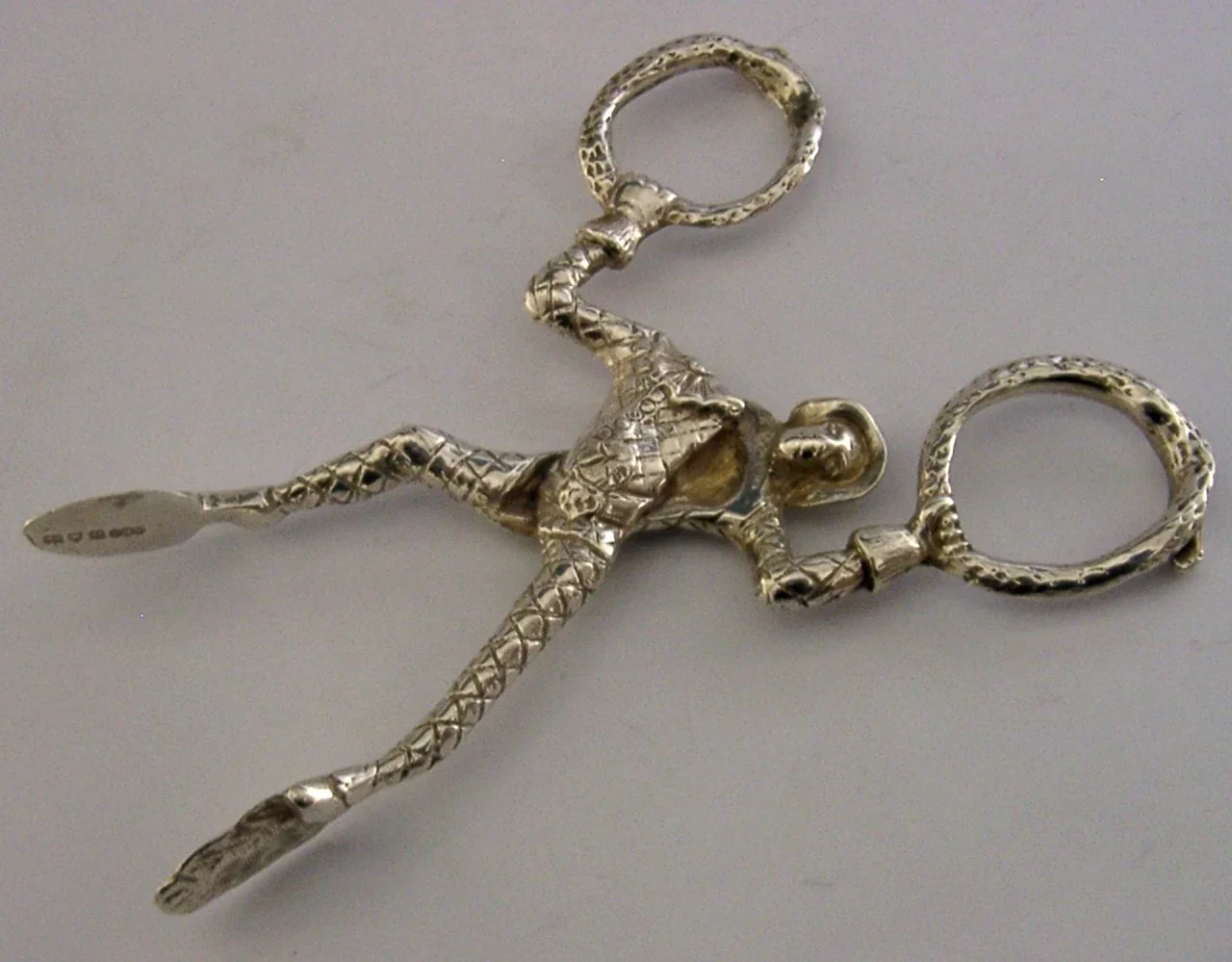 RARE STERLING SILVER HARLEQUIN JESTER SUGAR TONGS NIPS LONDON 1908 ANTIQUE