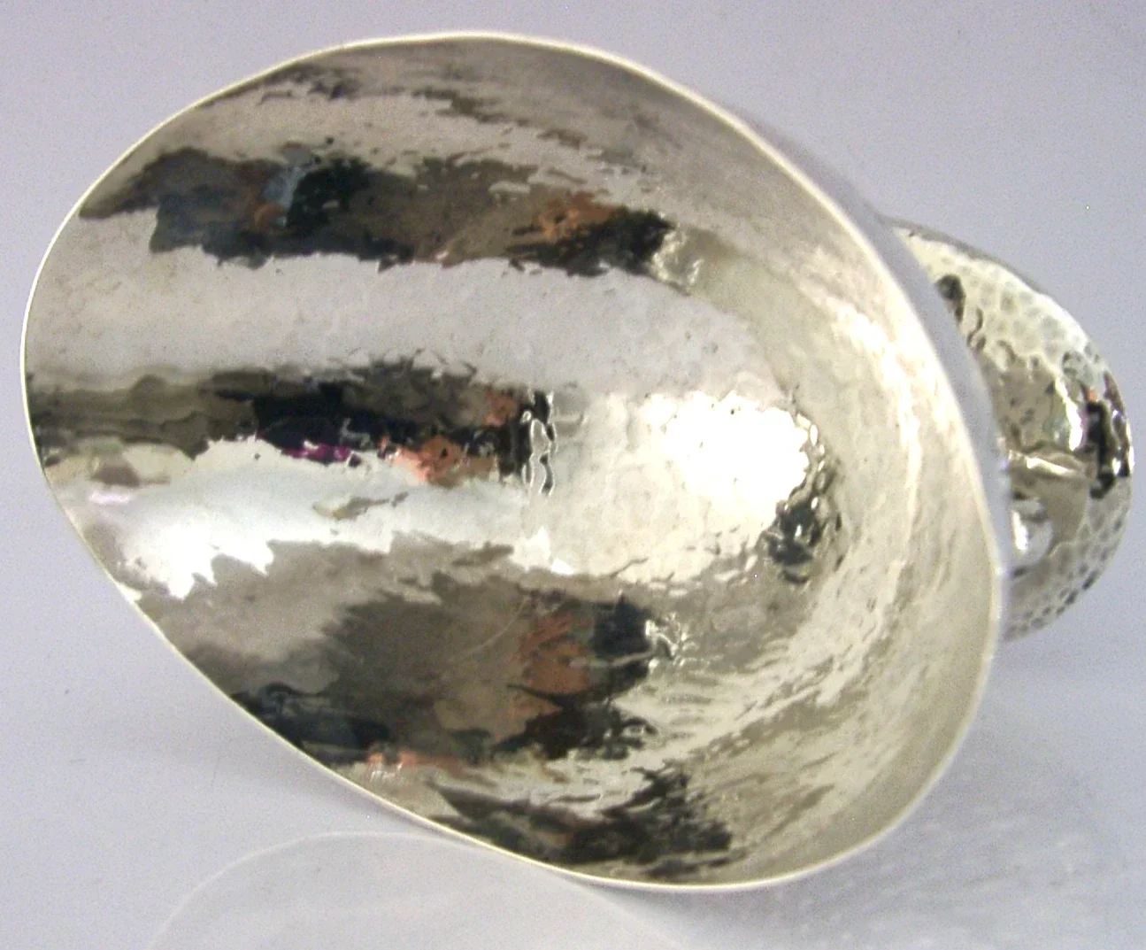 A beautiful hand made English Edwardian antique solid sterling silver bowl. It is hallmarked for Birmingham 1905 with the maker being Williams (Birmingham) Ltd. It has a beautiful Arts and Crafts design being planished. It is in superb condition being free from dings splits holes and repairs. It measures approx. 5 inches (12.6cm) long by over 3 inches (8.1cm) wide by 3.25 inches (8.2cm) tall and weighs 146 grams (total silver weight i.e. not weighted). A stunning piece.