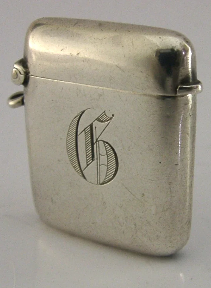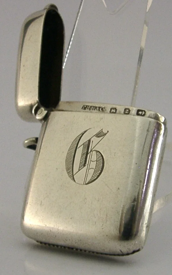 ENGLISH VICTORIAN SOLID STERLING SILVER 'G' VESTA MATCH CASE 1899 ANTIQUE