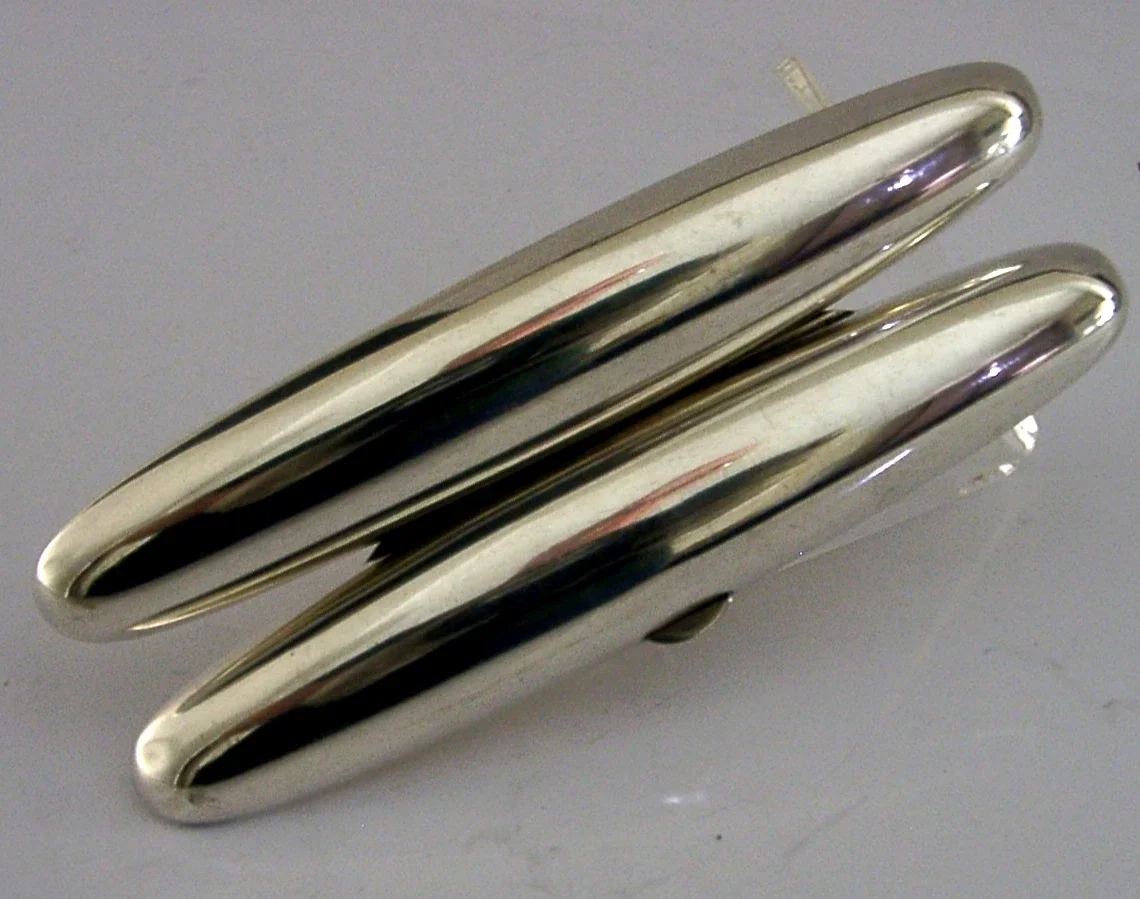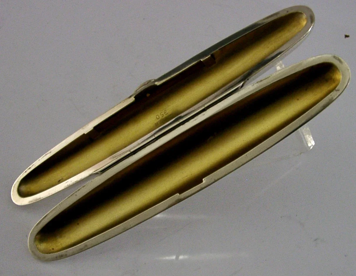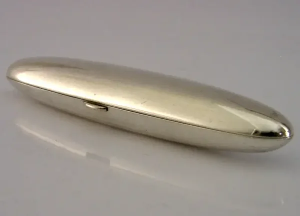 A stunning stylish Art Deco solid sterling silver single cigar case. It is marked SILVER 950 standard. I would date it to c1920s most likely Japanese. It has a very stylish Art Deco design and gilded inside. It is in superb condition being free from dings splits and repairs, just the odd faint mark, the gilding inside is perfect. It measures approx. over 5.25 inches (13.5cm) long by 1 inch (2.6cm) and weighs 46 grams. A very stylish piece.