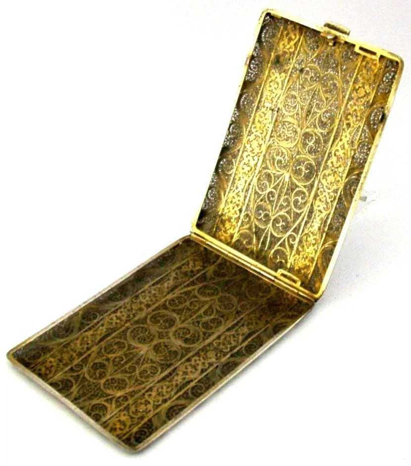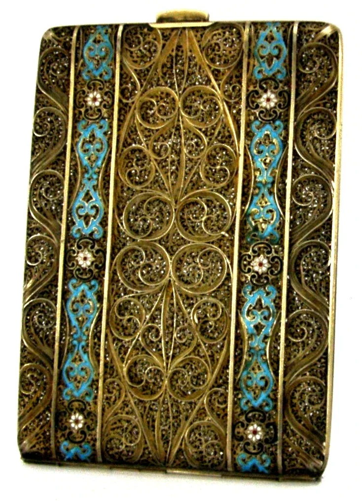 STUNNING SPANISH SOLID SILVER GILT ENAMEL FILIGREE CHEROOT / CARD CASE c1920