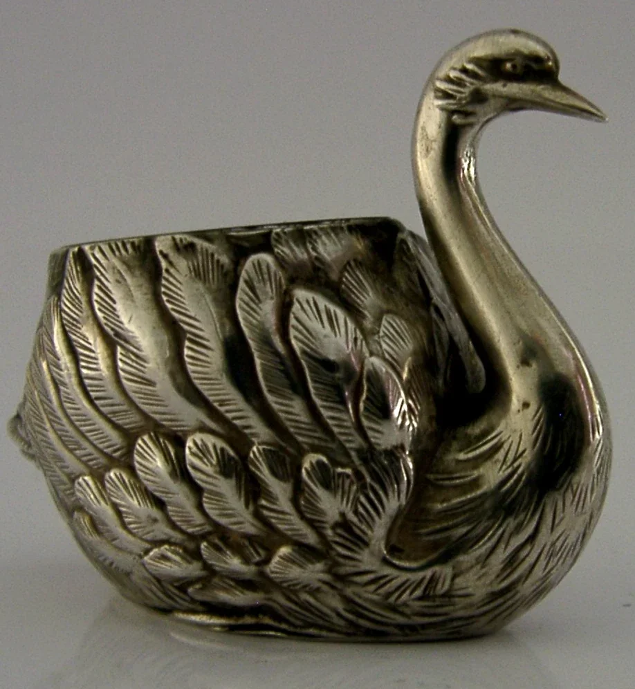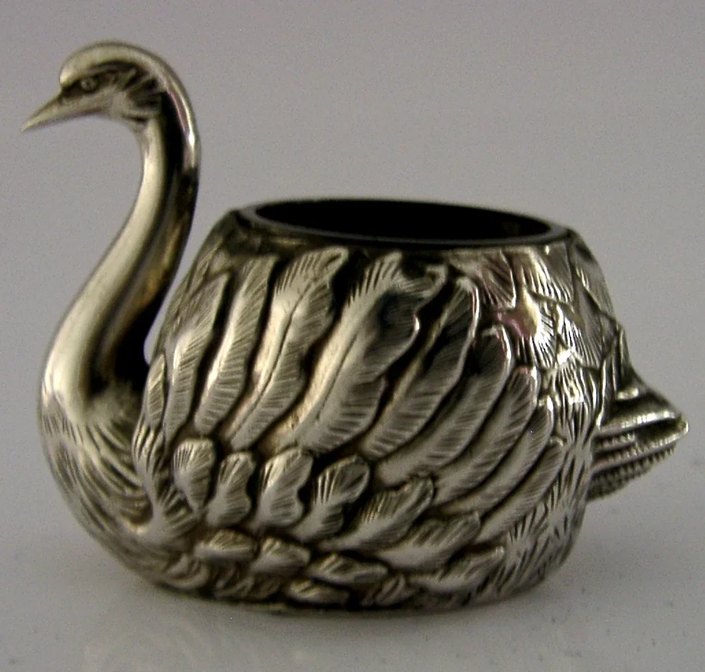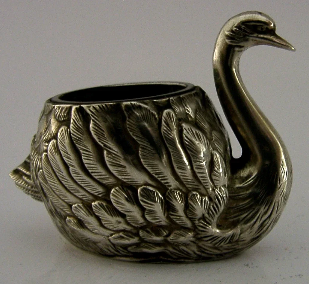 UNUSUAL JAPANESE 950 SOLID STERLING SILVER SWAN SALT CELLAR c1920 ANTIQUE