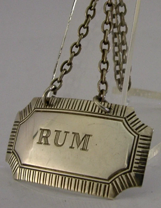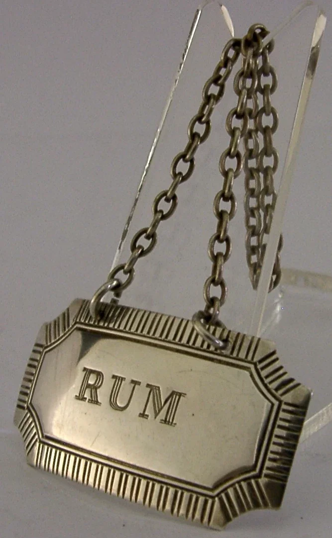ENGLISH SOLID STERLING SILVER RUM WINE LABEL 1970 BARWARE