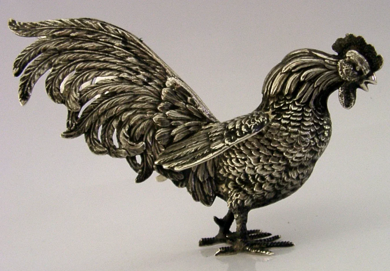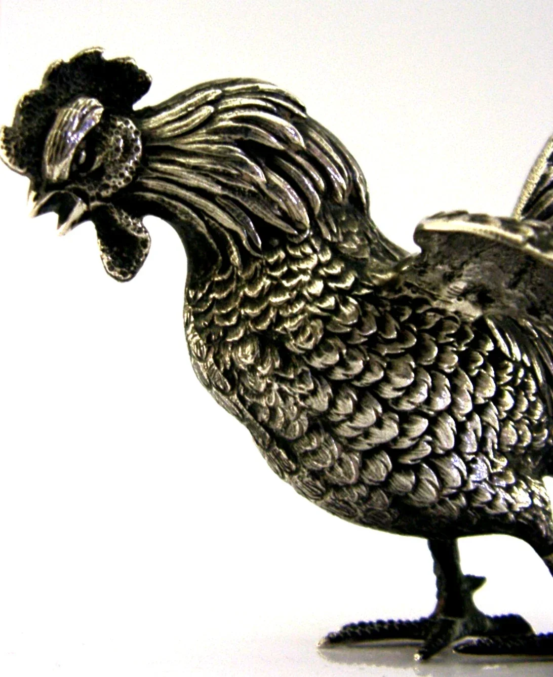 GOOD SIZE 833 SOLID SILVER COCKEREL HEN ROOSTER CHICKEN BIRD c1960 178g