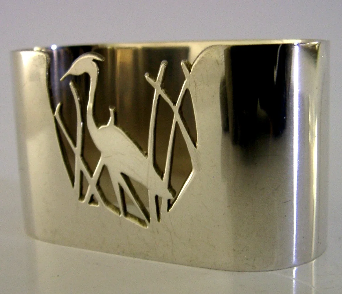 SUPERB SOLID STERLING SILVER HERON BIRD NAPKIN RING 1984 ANIMAL 30g