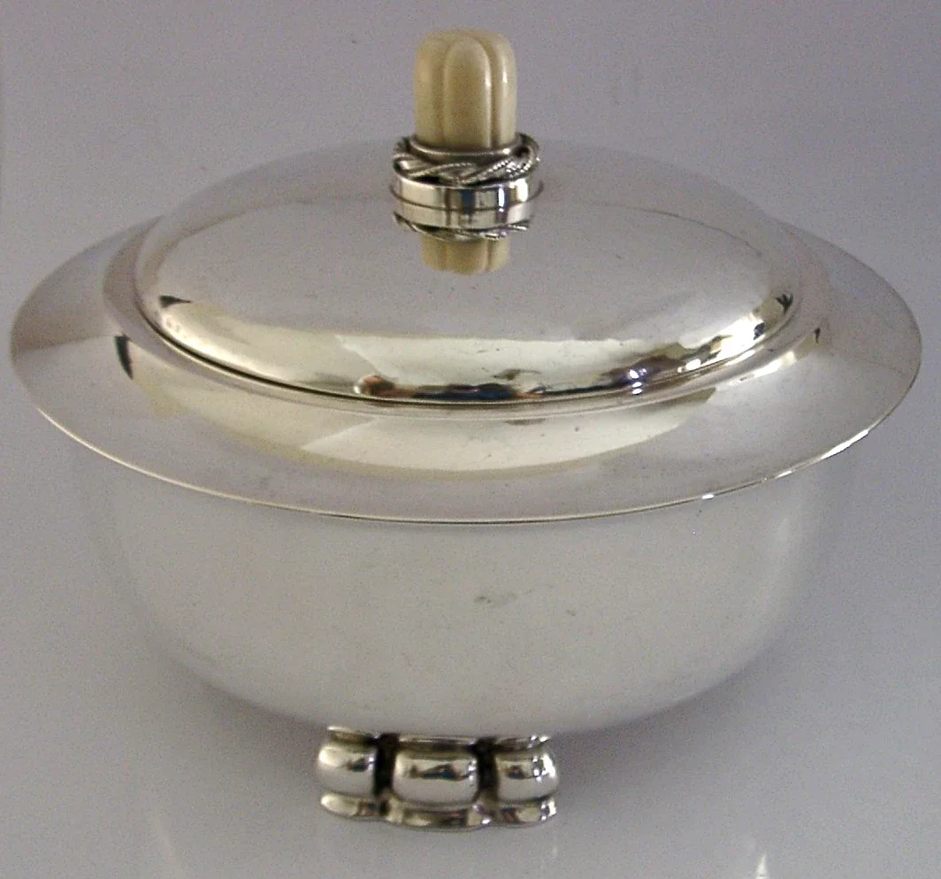 STUNNING LARGE 470g 835 SOLID SILVER ARTS & CRAFTS LIDDED BOWL c1920 PLANISHED