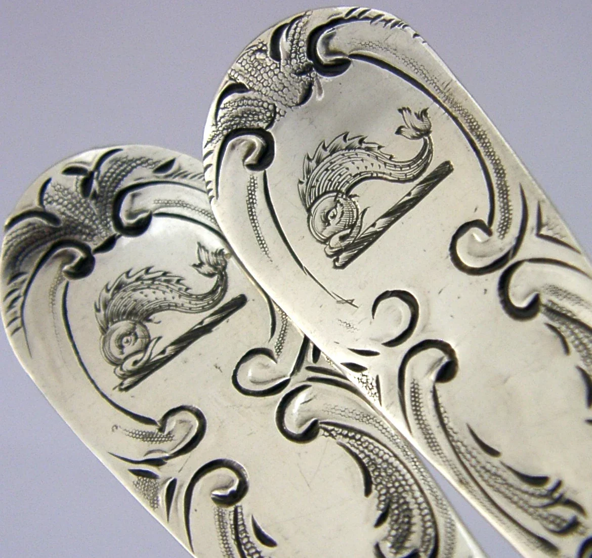 GEORGIAN STERLING SILVER FRENCH FAMILY CRESTED BERRY SERVING SPOONS 1803