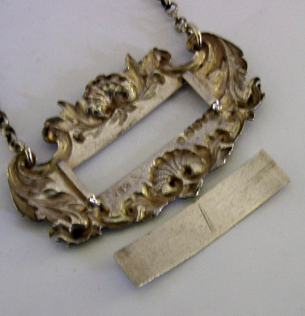RARE ENGLISH WILLIAM IV STERLING SILVER SLIDING RUM WINE LABEL 1836 BARWARE