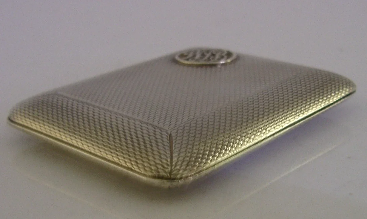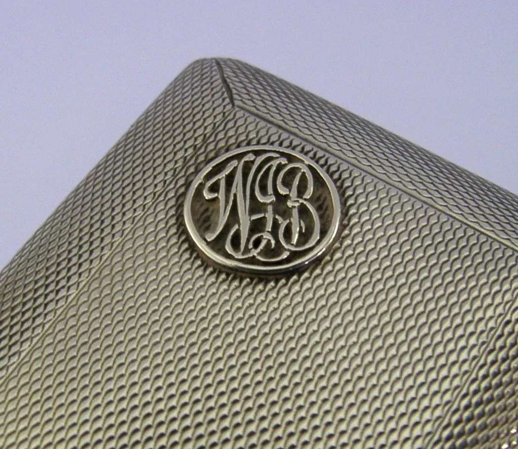 A very high quality English Edwardian antique solid sterling silver vesta case. It is hallmarked for Birmingham 1910 with the maker being Asprey & Co Ltd. It has been superbly made having a trick opening mechanism, i.e you have to slide the two halves together (which works perfectly). It has been engine turned and has applied initials WJB. It is in super condition being free from dings splits holes and repairs. It measures approx. 2.25 inches (5.6cm) tall by 1.75 inches (4.4cm) wide and weighs 42 grams. A very stylish piece.
